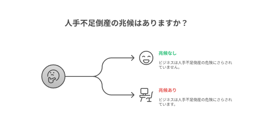 人手不足倒産リスク=「人の不足・偏り・流出が操業・納期・品質に影響し、近い将来に売上や利益へ連鎖する可能性」。
