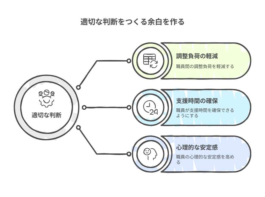 その結果、職員同士の調整負荷が減少し、支援時間が確保され、