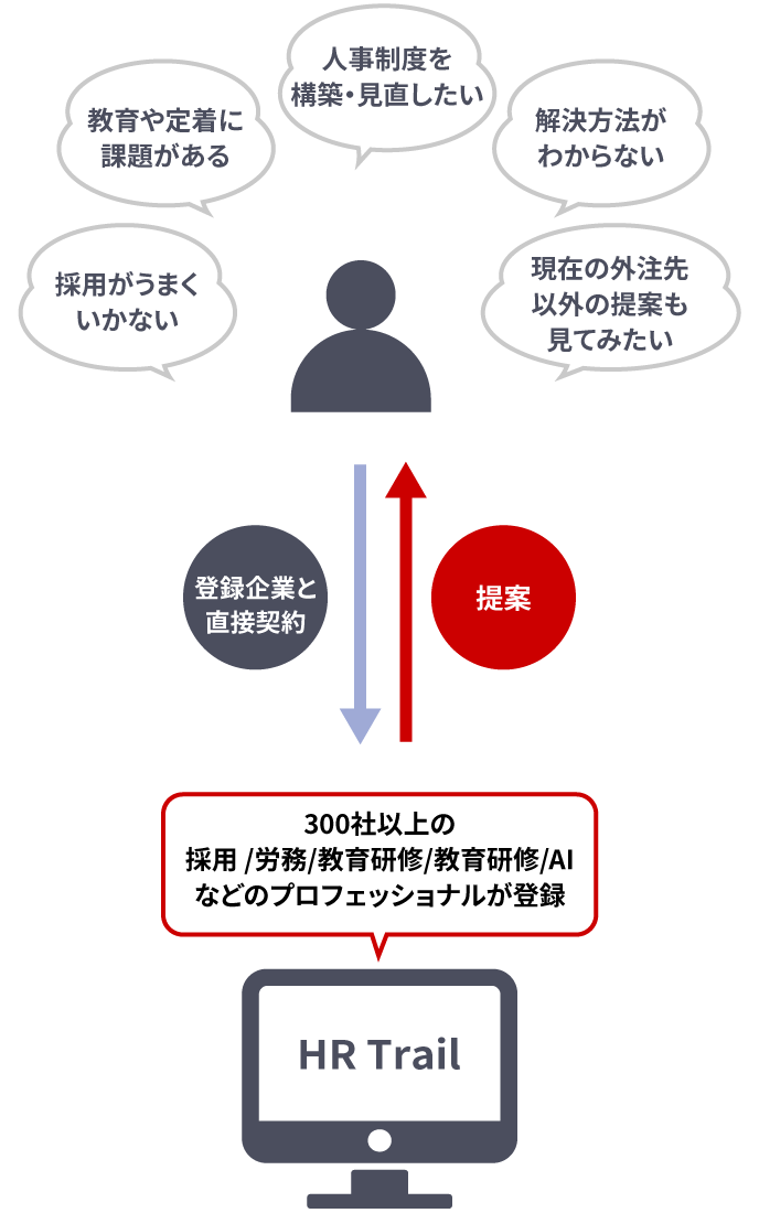 HR Trailに登録されている実績豊富な企業から、あなたの課題に特化したオーダーメイドの提案を受け取れます。